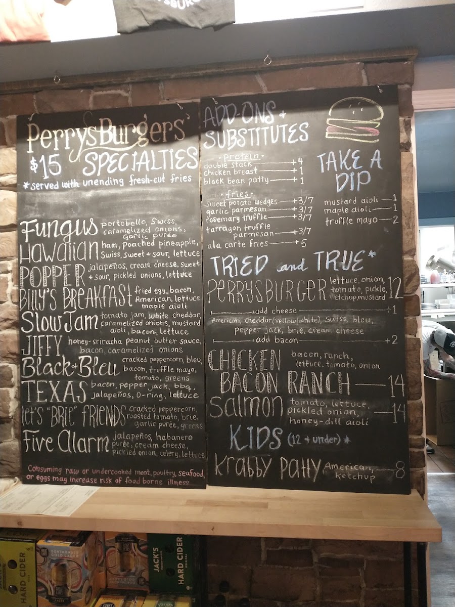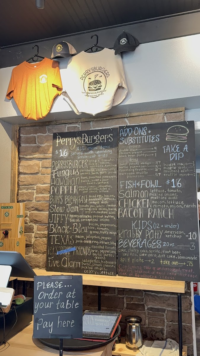 On the menu, you'll find an irresistible array of burgers, each with unique personalities. Highlights include the Fungus Burger, a savory delight packed with mushrooms, caramelized onions, Swiss cheese, and garlic, and the fiery Five Alarm Burger for those who crave heat. The PerrysBurger is another local favorite, customizable for that perfect double-stack experience.